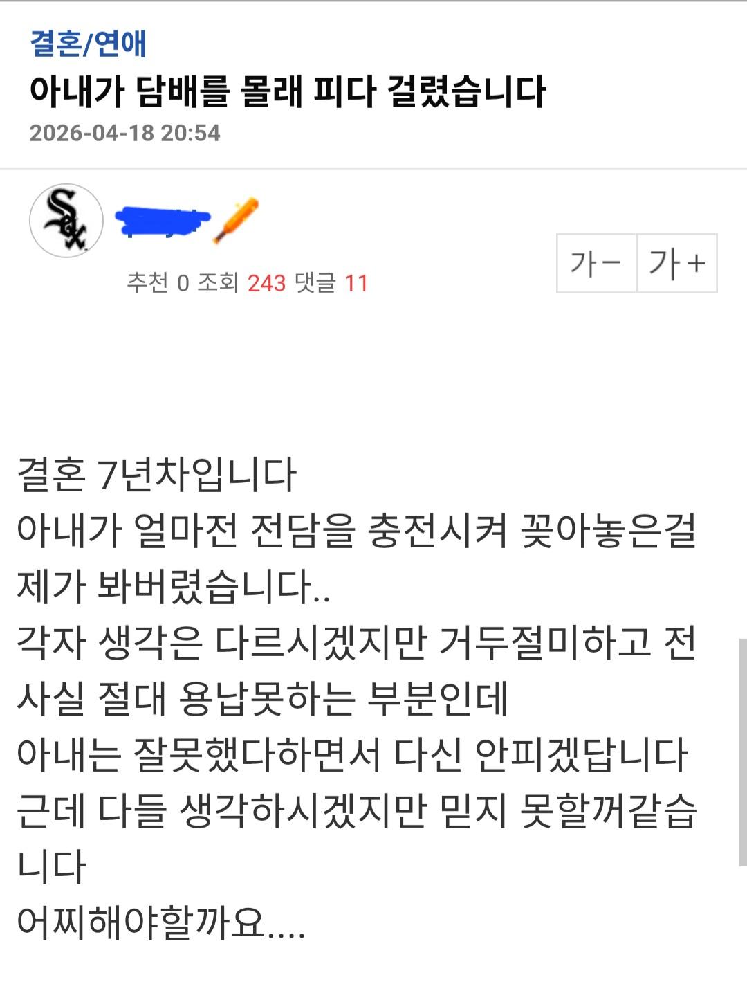 흡연자인줄 알았으면 결혼 안했을 것